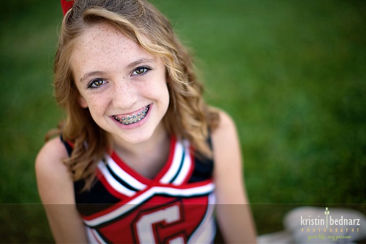 Well, we met early the frist day so I could get group shots of the girls. :) LOVED the green grass behind these beauties! I'm sure I'll have many more to share with you of the girl's cheering this fall during football.
