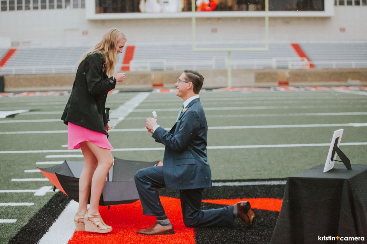 Kailyn + Tyler are ENGAGED! With family and friends up in the TT club watching from above, Tyler lured Kailyn there, with a story about winning a promotion at work. She thought she was there for dinner and a photo on the field. Something Tyler had won at work. Instead? He dropped to one knee and proposed! This girl was surprised! She chunked that umbrella and hugged his neck. Which I couldn't hear, but I'm sure was a yes!