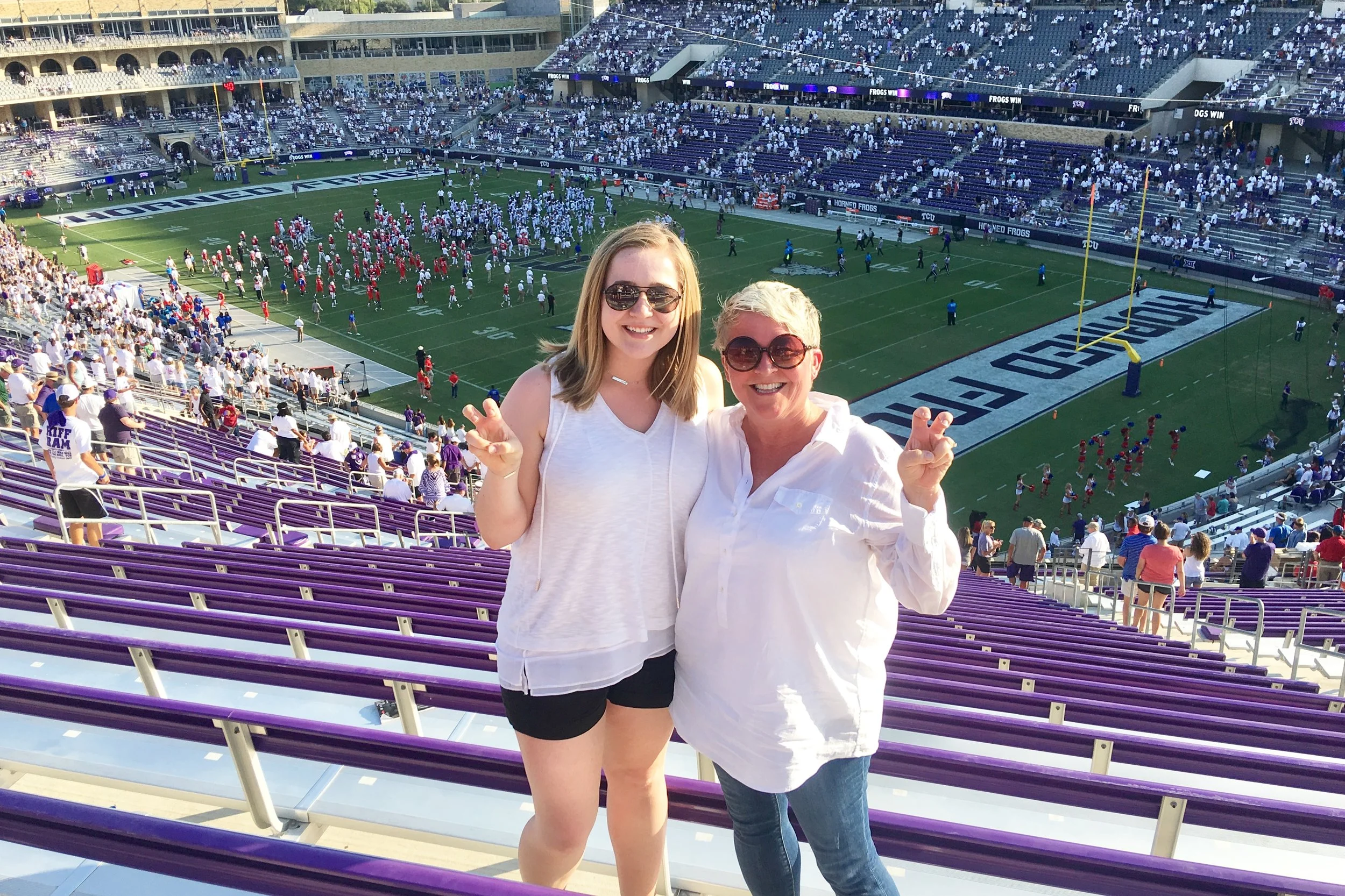 Summer Zoe, my youngest, is graduating this December. Let that sink in for just a bit. MY BABY is graduating college. I'm officially old as dirt. And I'm hating every aching minute of it. But back to the blog. I've only been to one TCU football game. That's just wrong. I mean, they all think I love the Longhorns best and then to only have gone to one football game? Shame on me! I'm simply proving their point because I've been to several UT games. Please forgive Hornfrogs. I love you as well. You just come with a higher sticker shock, that's all. And no Matthew McConaughey. But that's not your fault. I'm sure there is alumnus in your archives that are just as cute. Right?