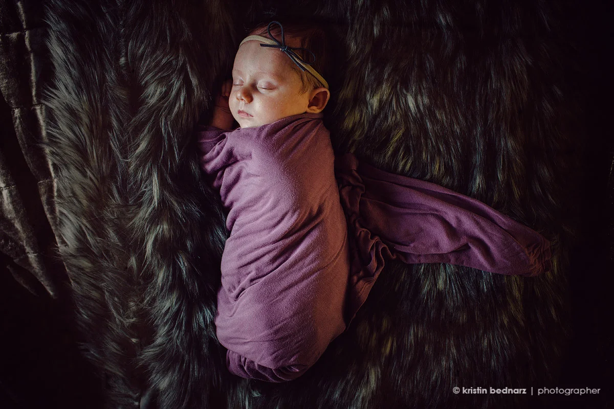 When I had my beautiful baby girls, bows were HUGE and the swaddle blankets weren’t much to photograph. I would instead find fabric or other materials to wrap them in and photograph. I’d see Anne Geedes work, you know, the babies in teapots and such? Anyway, inspiration comes from all over and in the case of sweet baby Halston? It comes from her parent’s awesome sense of style!