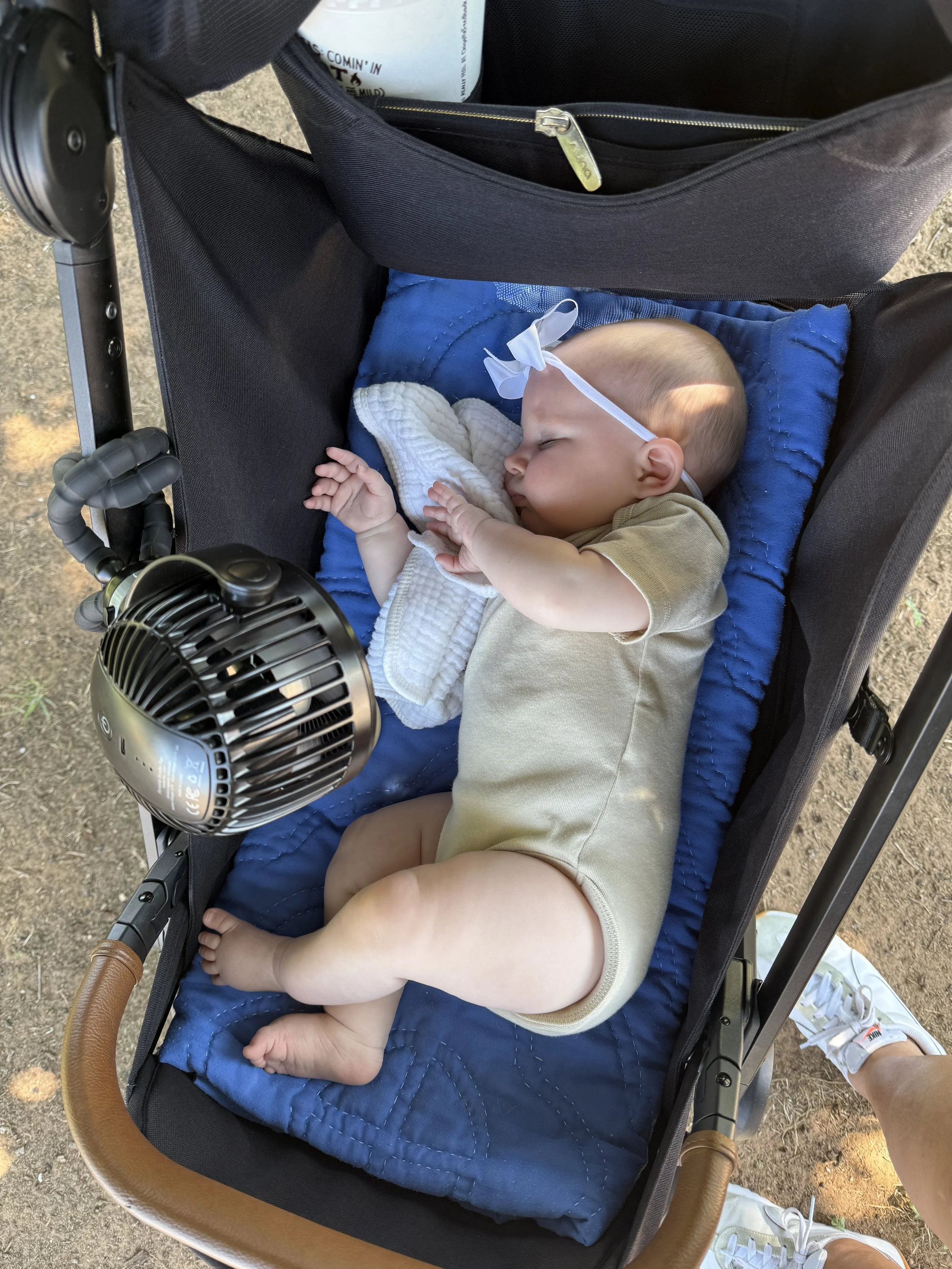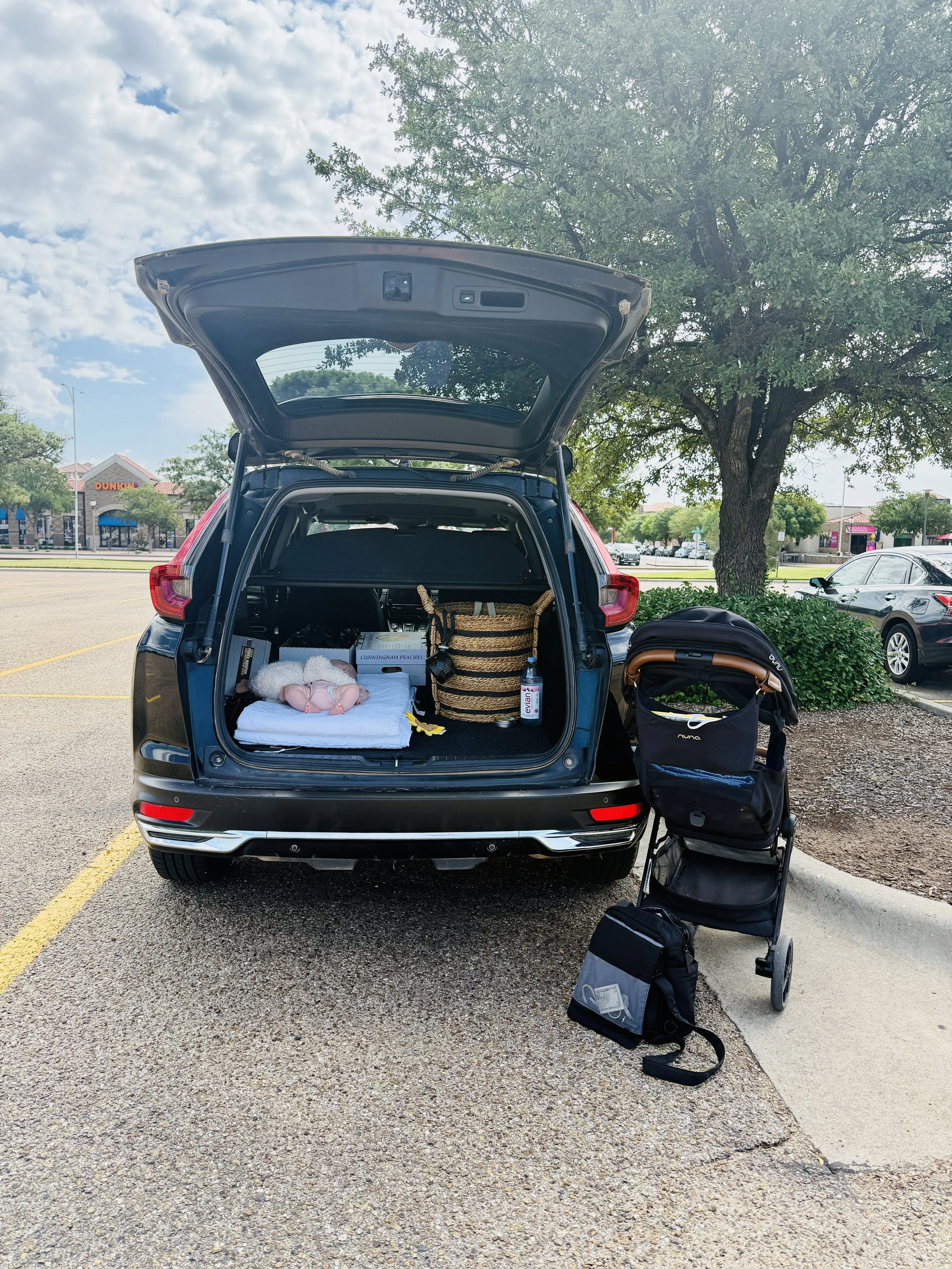 The above photo is what it was like the first few months. (Crazy looking at out setup!) Holland was eating 3-4 times a day and we stayed close by instead of going home to nap. So things where she slept. In the back of my Honda CRV on a quilt and I sat nearby. Her “taxi” or transportation to mom.